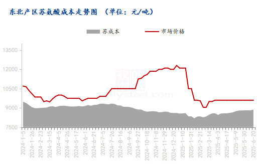 据mysteel调研,截至2025年6月20日,赖氨酸产区理论成本及利润周均估算方面(未冲减玉米副产品),1-5月玉米原料价格持续上涨,且原料价格涨幅大于70赖氨酸产品价格涨幅,70赖氨酸理论周均行业利润逐步下滑,东北多数企业下跌至509元/吨,山东70赖氨酸理论利润缩减至57元/吨左右理论盈利,氨基酸产区玉米原料收购价上涨明显,98赖氨酸成本进一步提高,受98赖氨酸企业及市场价格从年初持续下跌拖累,98赖氨酸行业利润再度压缩,东北98赖氨酸理论利润缩减至352元/吨。山东地区企业赖氨酸周均利润缩减至-460元/吨,步入亏损区间。
