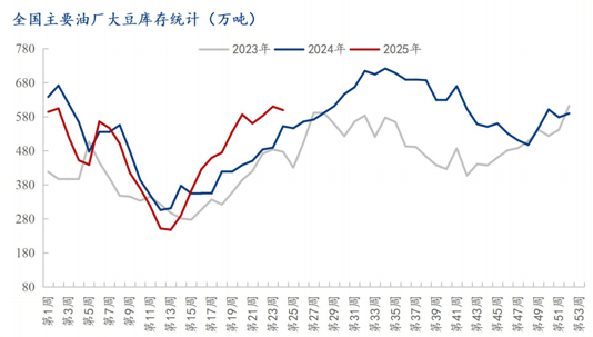国内油厂维持高位开机水平,豆粕持续累库导致胀库停机现象增多,现货市场供应宽松格局进一步加剧,但低价优势仍吸引下游企业加大采购力度,现货成交表现尚可,下游饲料企业7月头寸已备货过半,且豆粕物理库存同样处于高位,终端养殖利润下滑,豆粕添加比例难有上调空间,预计进入7月份将以执行前期合同为主,同时逢低采购现货以进一步摊低原料成本。,下游饲料企业的豆粕库存几近饱和,短期需求缺乏明显的增量动能,综合来看,在供需宽松的基本面压力下,短期豆粕现货价格预计仍以承压运行为主,市场等待关键报告出炉提供方向指引。于色氨酸及缬氨酸而言,短期豆粕难以提振市场动能。
