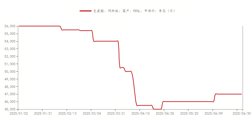 时光如溪,潺潺流过2025年的盛夏。站在年中分水岭回望,这段氨基酸市场的“山川行旅”已泼墨出新的画卷。2025年以来,98赖氨酸与苏氨酸价格自高位急转直下,但苏氨酸触底后渐显回暖上涨,98赖氨酸却延续跌势至近五年低位,70赖氨酸虽波动频繁,但价格中枢整体上移,蛋氨酸经历两月沉寂后开启爬坡上涨模式,色氨酸与缬氨酸则上演“深V”反弹上涨,自底部强势回升。上半年氨基酸各品种走势分化的背后,是供需博弈还是格局重构?下半场的战局,又将如何演绎机遇与风险的交响?